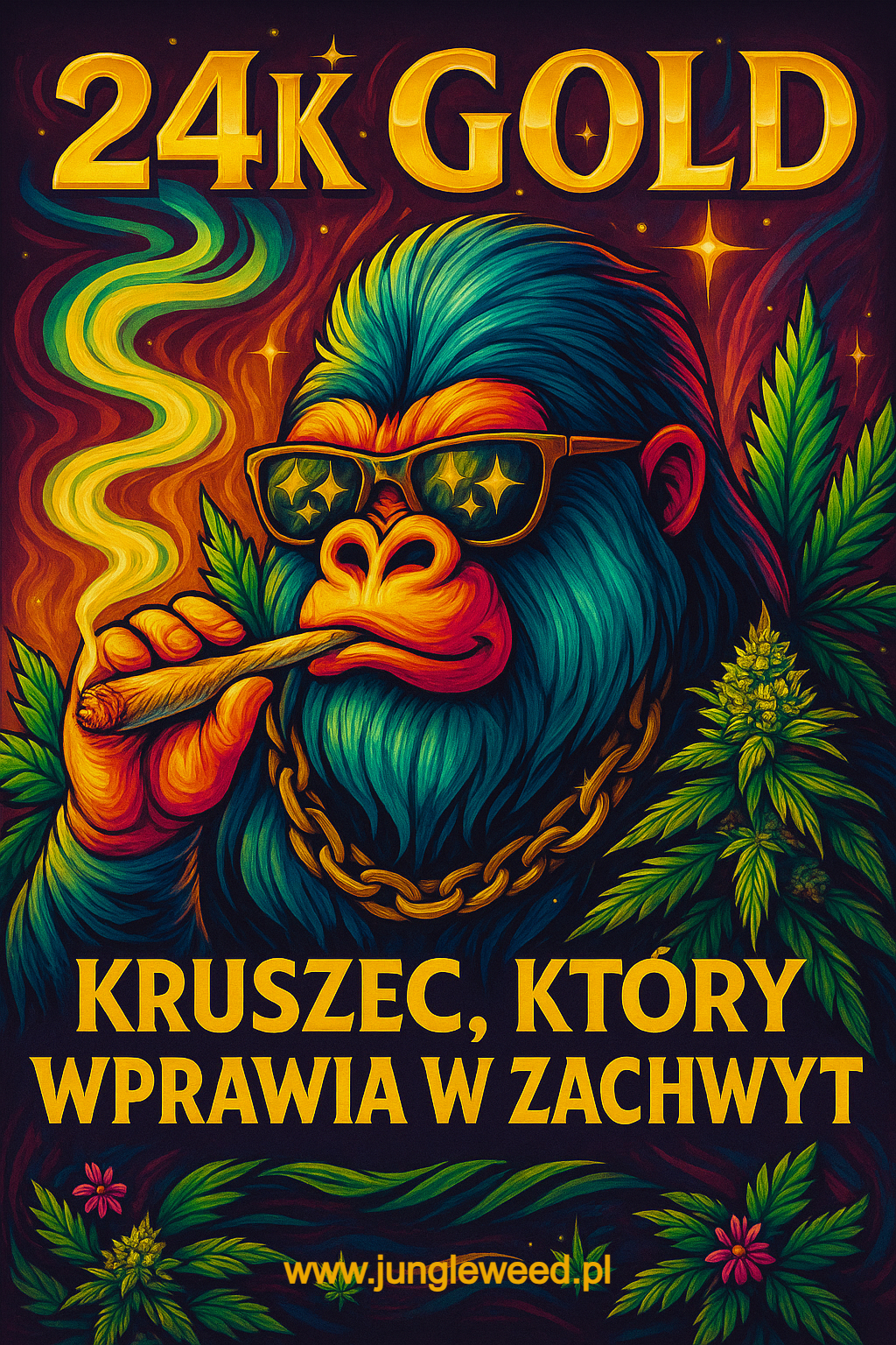 24K Gold (Kosher Tangie) – cytrusowa odmiana marihuany powstała z Kosher Kush i Tangie. Sprawdź smak, poziom THC, genetykę i działanie tej popularnej hybrydy.