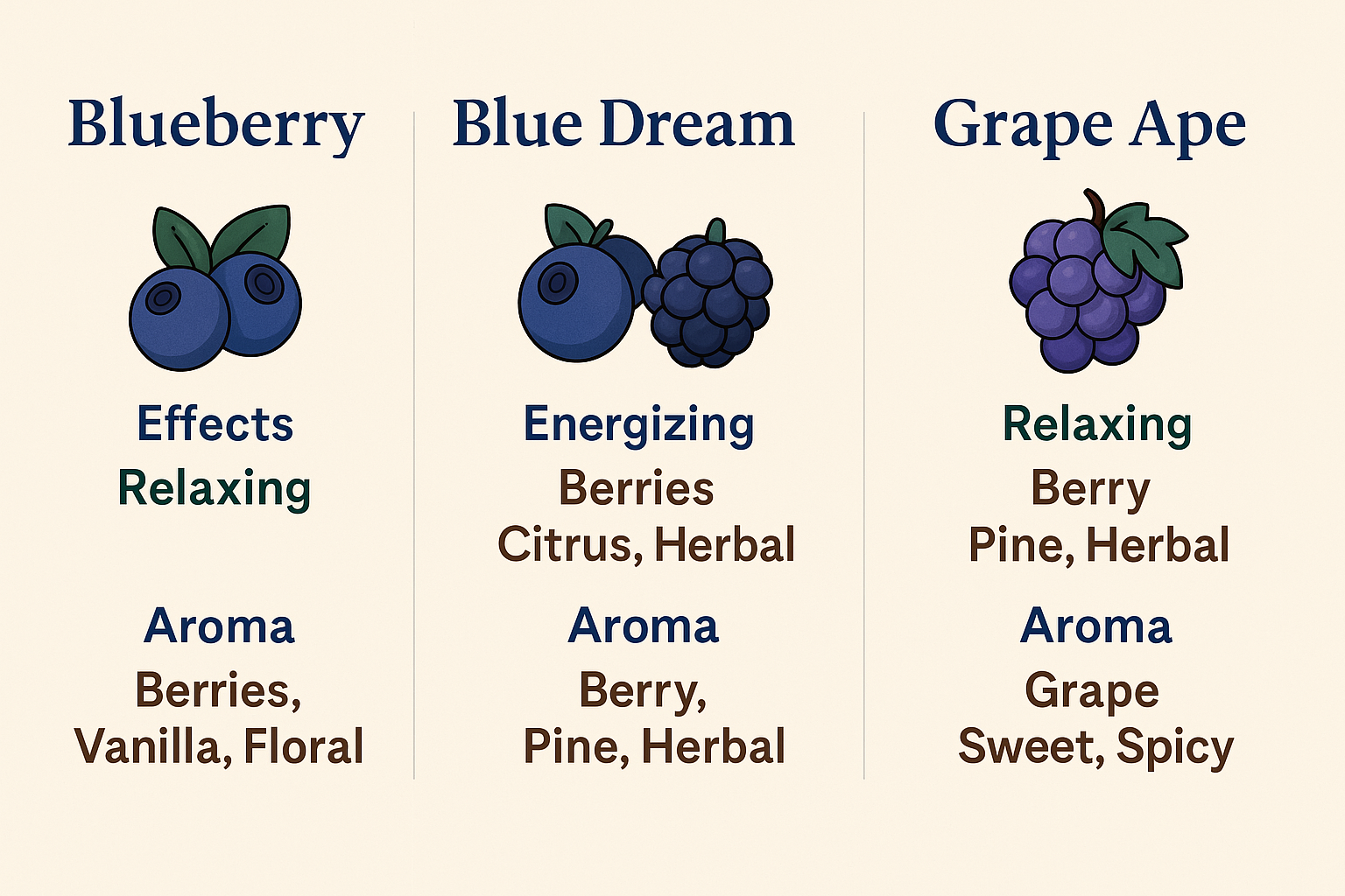 Porównanie owocowych odmian marihuany: Blueberry vs Blue Dream vs Blackberry Kush vs Grape Ape